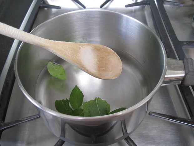 Hervir el agua, la menta y el azúcar por 10 minutos, luego dejar enfriar.