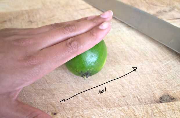 Una de cal del rodillo en una tabla de cortar u otra superficie dura con la palma de su mano. Esto ayudará a romper los nudos de jugo en el interior, por lo que una vez que usted corta abierta y apriete, los jugos fluirán.