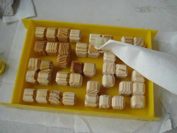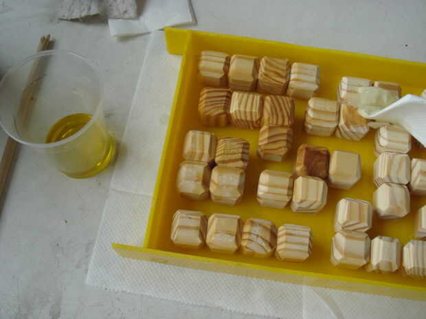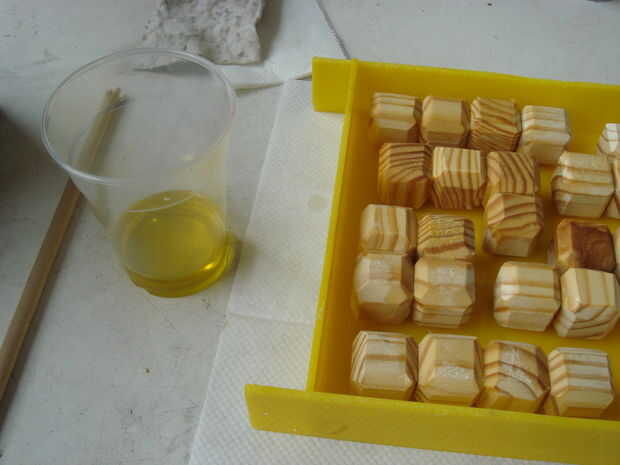 Para evitar que la silicona se pegue a los bloques de madera capa de cada uno de ellos en aceite de oliva, o una sustancia no pegarse diseñado específicamente para su tipo de silicona.