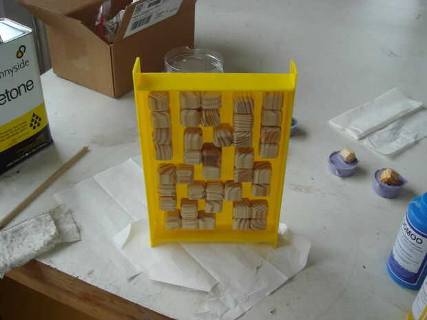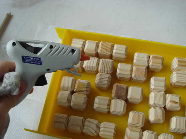 Una vez hecha la caja positiva, pegar los bloques de tetris para la parte inferior usando una pistola de pegamento caliente.