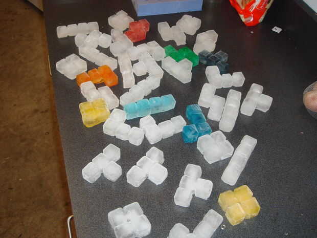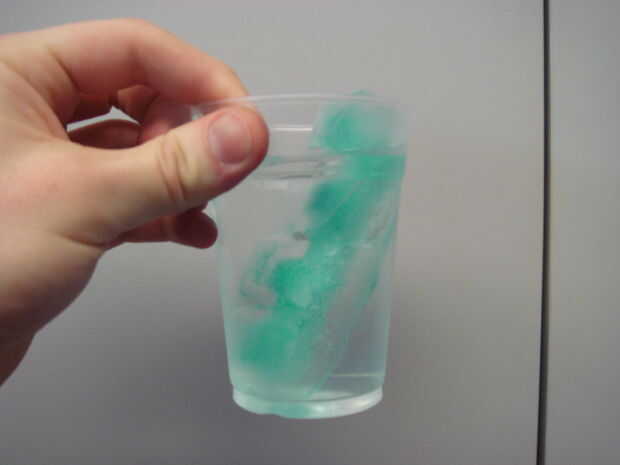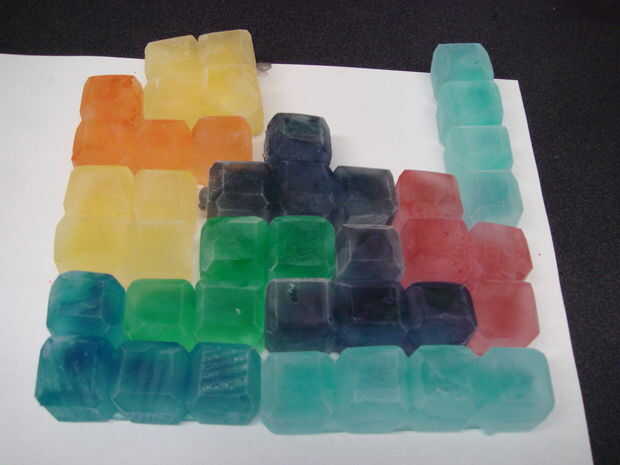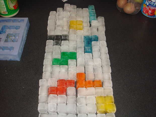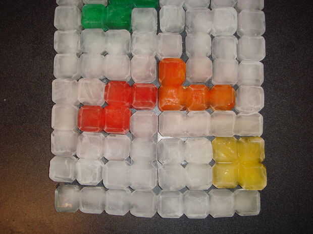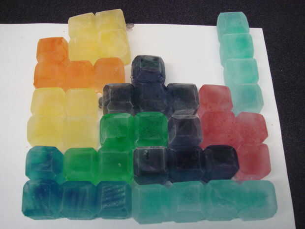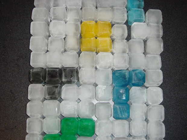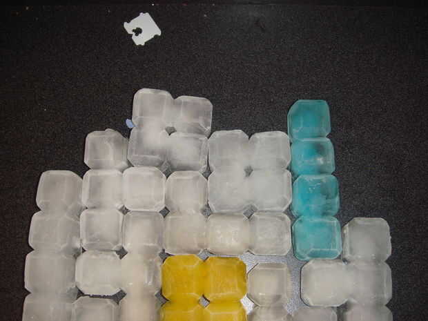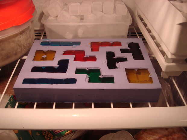 Vierta el agua coloreada en el molde y deje sentarse hasta congelados (5-6 horas).