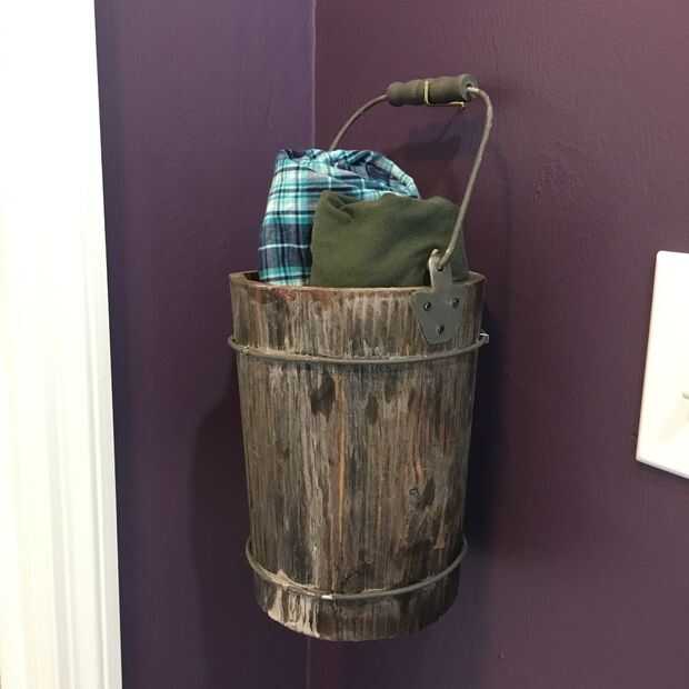 Mamá encontró el cubo en una venta de garaje y rociaron el interior con una capa protectora transparente para guardar mi ropa limpia.