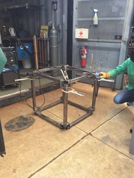 • Después de cortar todas las piezas al tamaño y forma deseada, nosotros soldados todos ellos. En primer lugar las placas fueron montadas y se unieron mediante el uso de soldadura de TIG y luego hicimos MIG de soldadura para montaje de chapa de acero y tubos de acero.