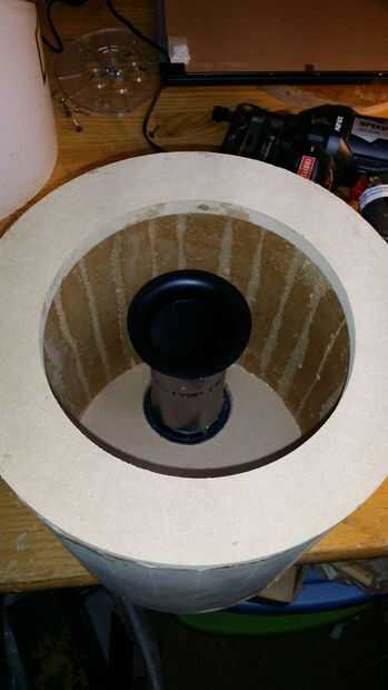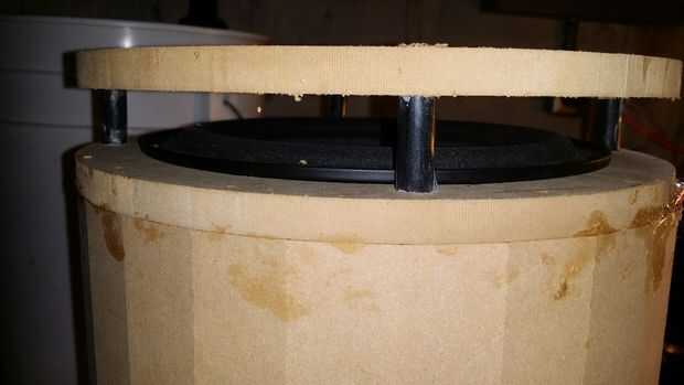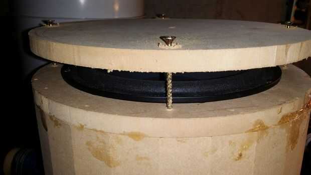 Luego puso mi último 10,25" redondo encima woofer y utiliza una broca de avellanar orificios para los separadores de 1".