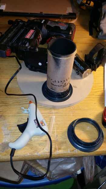 Usé una sierra del agujero 3" para perforar el orificio. Pegamento caliente celebró el puerto y ensanchados extremos togethor en el antiguo recinto, usé la misma para montar en el nuevo recinto.