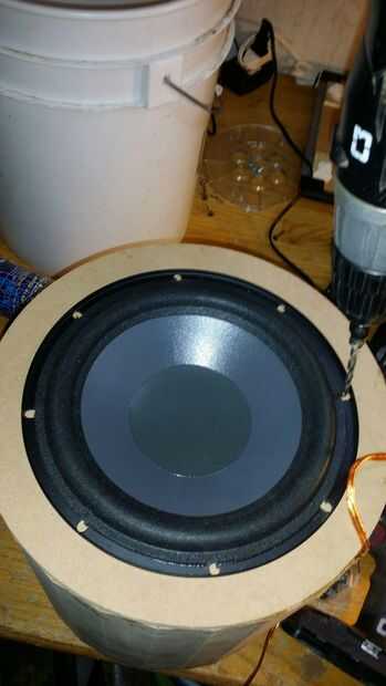 Luego pretaladran lo woofer los tornillos de montaje y montar el altavoz abajo.