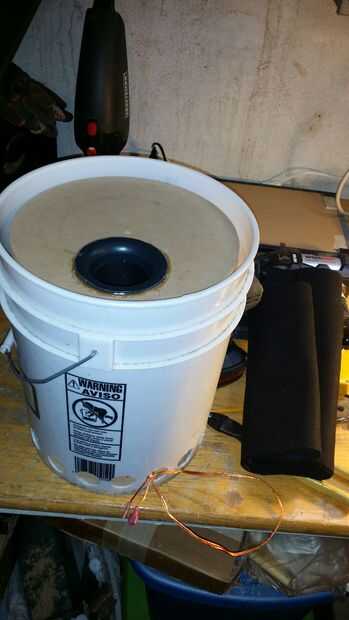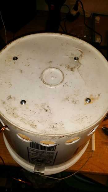 Había volteado boca abajo la caja del altavoz para bajas audiofrecuencias y puso en algunos bloques, luego coloque el cubo sobre.