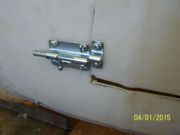 Si fueras razonable cuidado de colocar las bisagras, los pestillos debe línea bastante cerca. Fije la empuñadura después de taladrar los agujeros para ello.