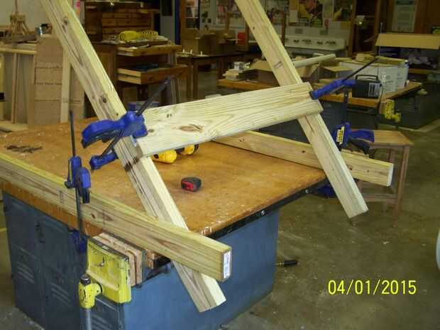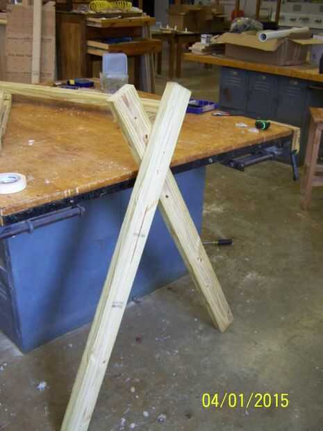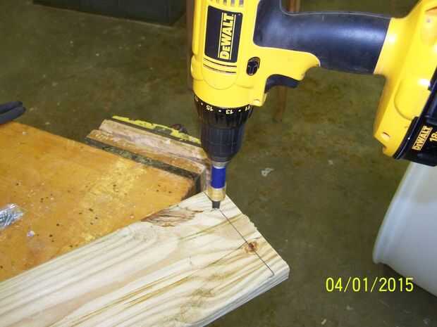 Cuando la hicieron mide la longitud de mi barril y cortar la Cruz apoyos por lo que sería en el interior de la pierna y dan med aproximadamente una pulgada de espacio libre a cada lado. I fijar las patas a la mesa y pre-perforados los agujeros en los soportes (ver fotos 3 y 4).