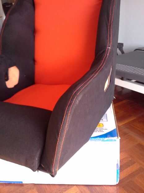 Para cubrir el asiento utilizo un dos colores negro y rojo. su primera vez en una máquina de coser, pero le ha salido bastante bien.