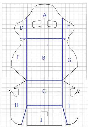 Comienza por cortar la plantilla en las piezas que se utilizarán para cortar a la tela. hay que cortar dos de cada uno para interior y exterior, excepto C y J.