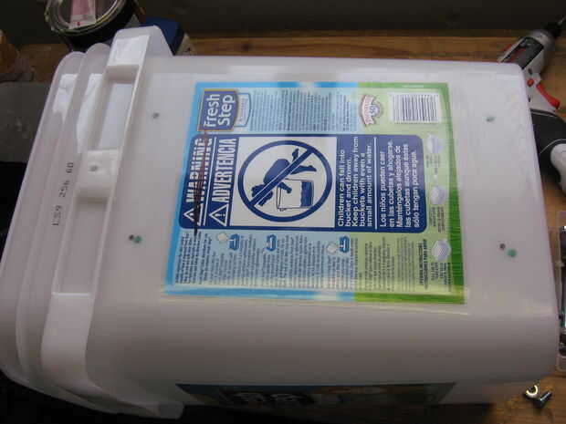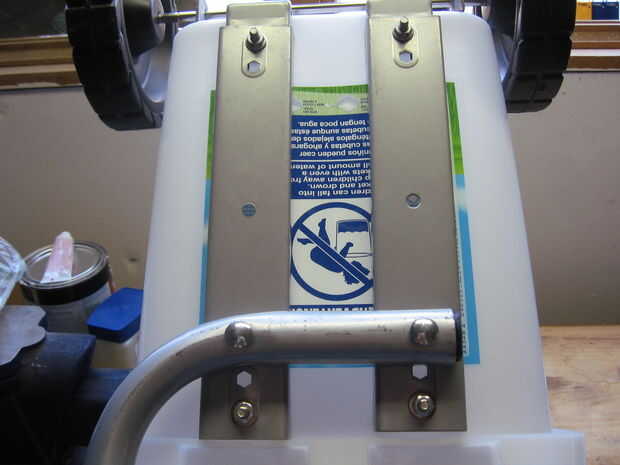 Las cabezas de los pernos estaban dentro de la cubeta con los tallos pasando por el cubo y soporte y las tuercas en el exterior. Esto fue hecha para reducir la liklihood colocan las bolsas en el cubo se atoren.