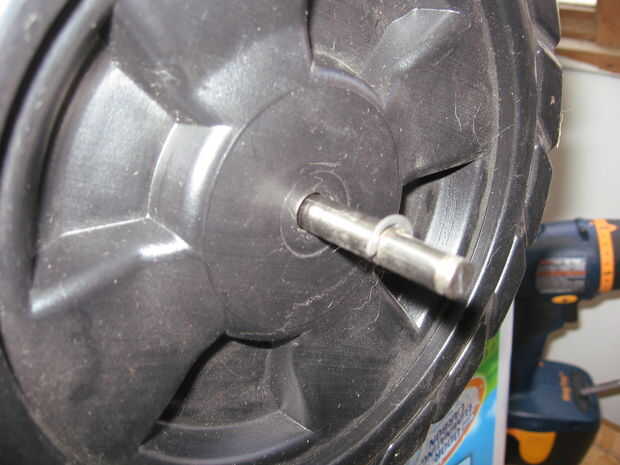 Ahora es el momento para que las cosas del balanceo. Deslice el eje en los cubos de eje hasta una cantidad incluso salientes de cada lado del cubo. Luego deslice una rueda a cada lado. Para mantener las ruedas en lugar de prensa una presilla en la ranura en el extremo de cada eje. O garantizar por cualquier medio alternativo que elija.