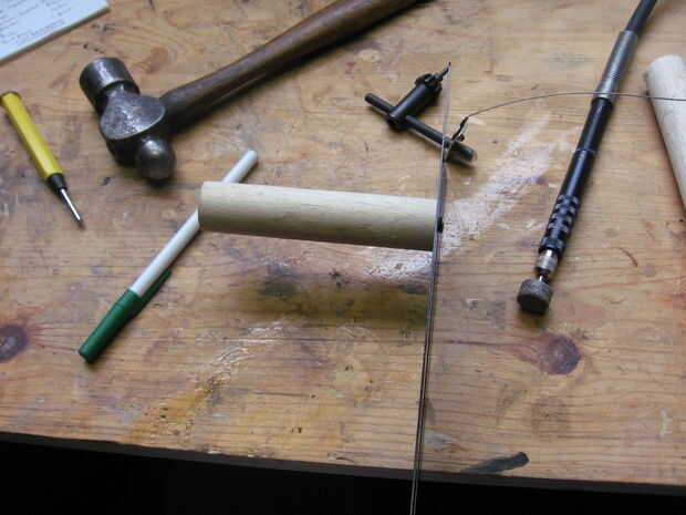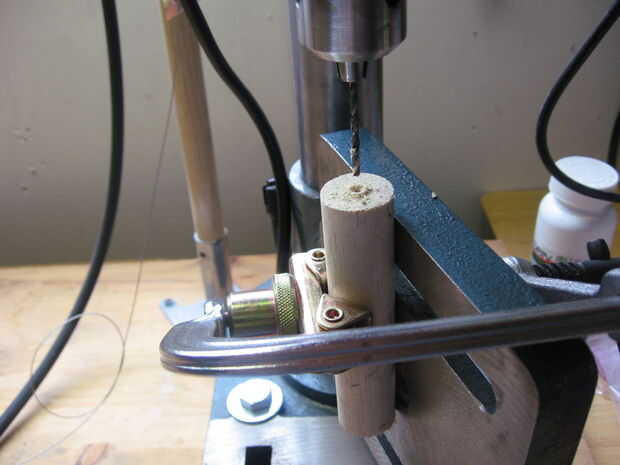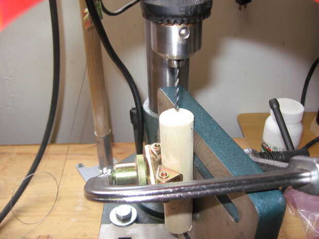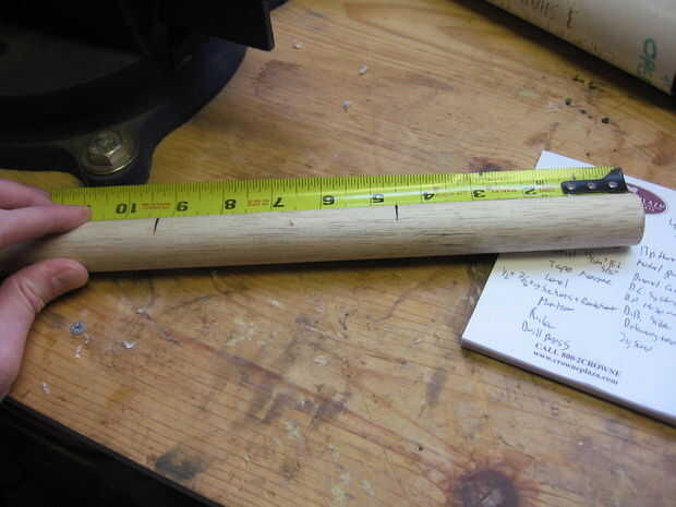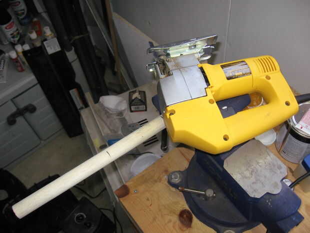 Y cuando lo hizo acabé con algo que no de pie porque el mango estaba demasiado pesado. Así que después de una gran cantidad de groserías, beber un Dr. Pepper y una siesta de dos horas habló con mi esposa. Sugirió hacer las piernas más cortas que esto haría que todo el asunto de la manija y compensar el peso. También sugiere tener un pie más pequeño en una clavija de centrado sería pararse mejor en la tierra desigual.
