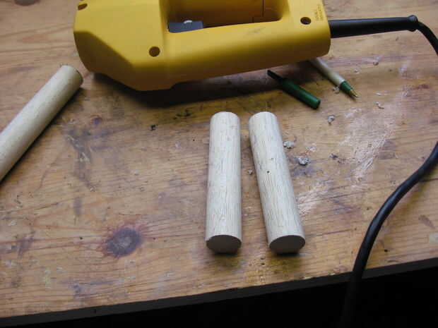 Al principio probé sólo acortar los tacos por una 1/2" porque me gustó la idea de un pie ancho. Y la Sra. RadBear cumplidamente probado hacia fuera y dijo, aunque era mejor, el carro todavía era volcarse. Así que corte la espiga hacia abajo más lejos (ahora de 3" de alto) y a un solo pie. Y de mis pruebas preliminares parece ser mucho más estable. Aún más evidencia debo solo escuchar a mi esposa para comenzar con.