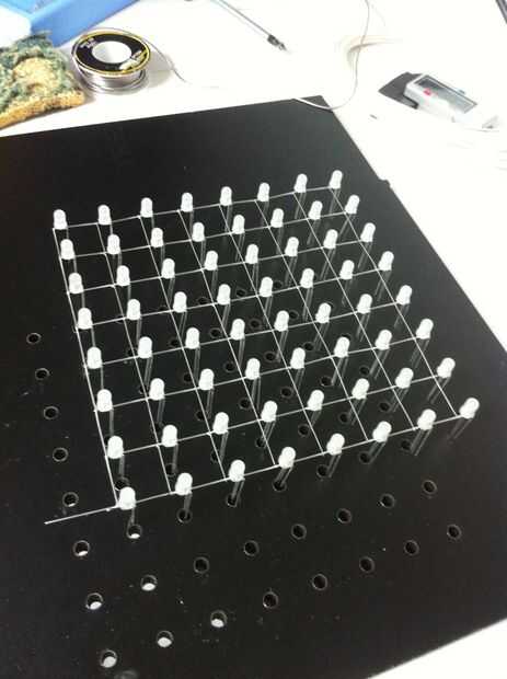 Cuando un nivel se completa tienes que probar todos los LEDs (que sería estúpido si uno en el centro del cubo no funciona: s): poner 3v en el ánodo y con el suelo tocar las 192 patas. A veces tienen no el mismo brillo, se podría sustituir por otro. (Pic8)