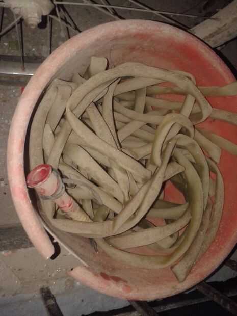 Usé cubo dañado / roto para almacenar tubos que de lo contrario sería mentir por todo el patio.