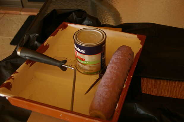 Entre capas Asegúrese de limpiar el polvo para que se peguen. Ahora, su máscara y empezar a lijar! (lijadora de banda sería agradable...)