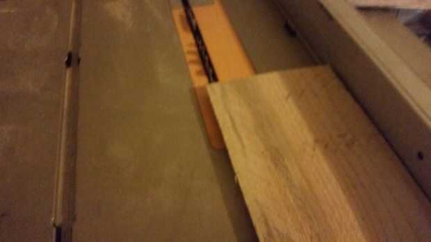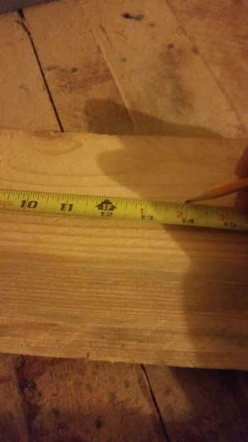 Secado de octagon, medir de un lado hacia el lado opuesto. En pulgadas 4 lados hacen aproximadamente 10 1/4 pulgadas. A mi habitación, cortar tablas de 14 pulgadas de longitud. Usé 3 tableros para cumplir o exceder de 14 pulgadas de ancho. Recorte los lados de las juntas para hacer una buena articulación y encolarlos. No tengo barra abrazaderas que durante mucho tiempo así que he probado con cinta y realmente funcionó bastante bien. Espera para el pegamento se seque, hora y media fue lo suficientemente largos para hacer cortes.