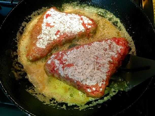 Antes de agregar los restantes 2 filetes de cubo, añadir más mantequilla y aceite. Añadir los restantes filetes de cubo, dorar cada lado de la carne. Colocar los filetes de cubo con los otros dos en la cacerola de la cacerola. Ponga a un lado.