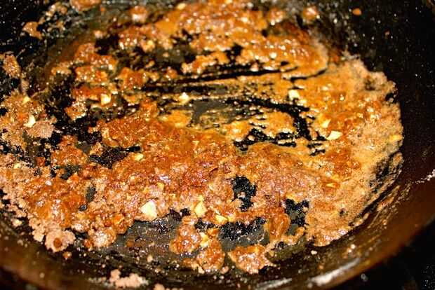 Fuego bajo, mezclar los jugos y mezcla de salsa, creando una pasta como mezcla.
