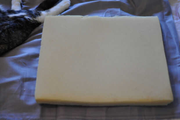 Primero necesitará recortar 6 cuadrados de acolchado de la espuma. Reutilizar cuadrados de 14 x 14 que un cubo de tamaño agradable.