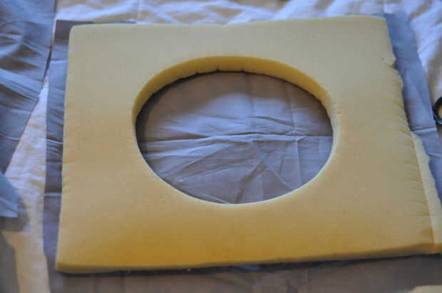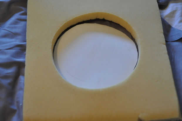 Utilizar el mismo patrón de círculo para cortar un agujero en una de las plazas de espuma que serán la puerta de entrada.