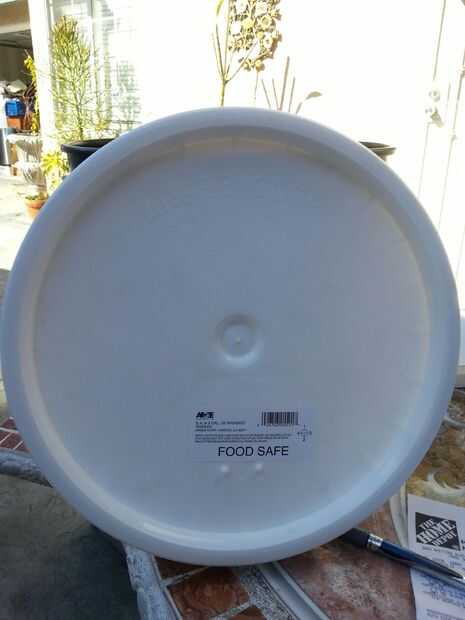 -una tapa de cubo de plástico (ajustes de 5 galones en mi cubo. También adquirí uno con una junta)