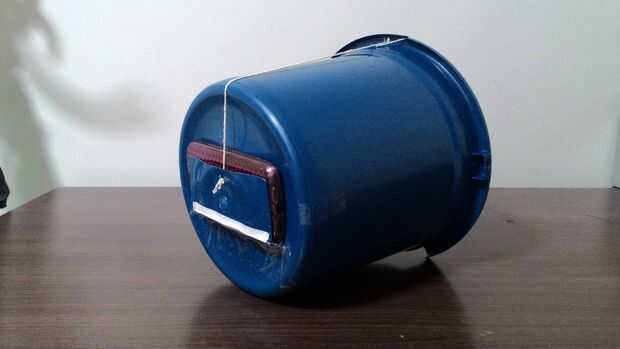 un cubo de plástico ranurado se convierte en un soporte de bicicleta asombrosamente resistente.Mes nacional de la bicicleta, el mercado de agricultores local había querido nuestras "esculturas cinéticas" en pantalla. Necesitábamos algún tipo de