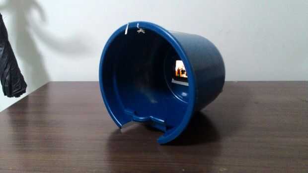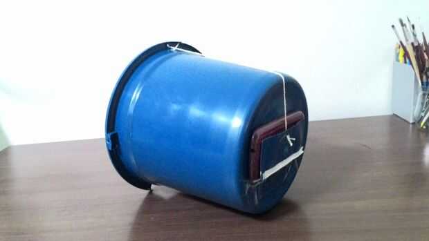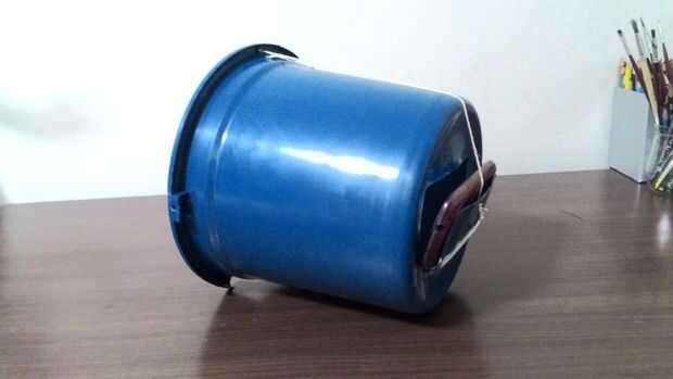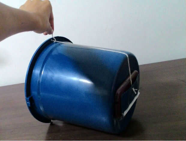 Terceiro passo: coloque o fio ningún rasgo feito na boca balde (etapa anterior)