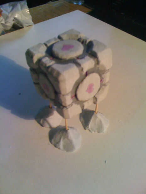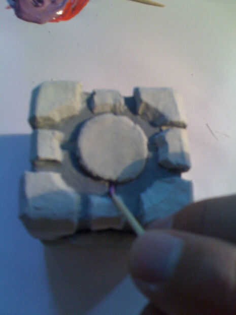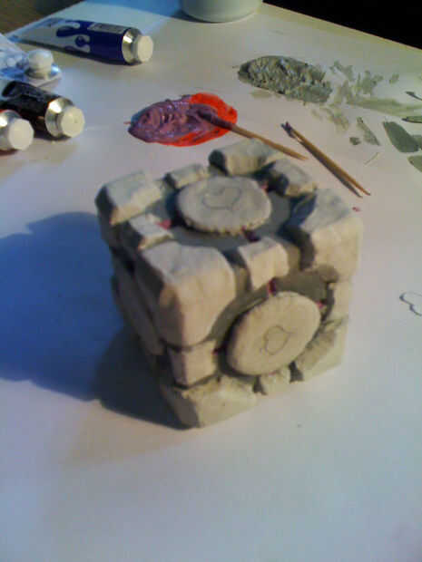Deja la pintura secar y hacer un soporte improvisado de barro y palillos de dientes (ver imagen). Tome la configuración entera fuera y coloque el cubo en el stand. Sacuda su laca o sellador y rociarlo con un par de capas, dejar secar entre.