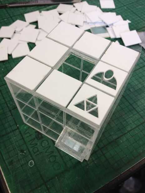 luego montar la sección de irradiacion del cubo y colocar con el agujero en la parte frontal.