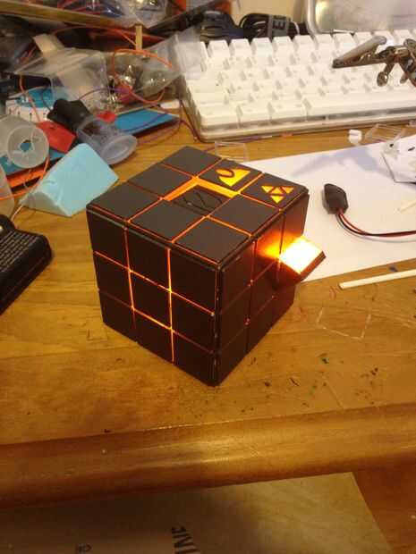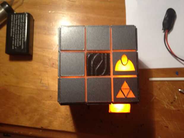 Coloque la batería dentro y luego poner el planel inferior en el cubo y están listos para la primera iluminación.
