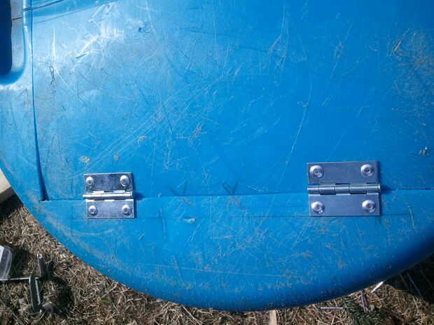 Taladré los agujeros para las bisagras y pop clavado en con arandelas de acero inoxidable en la parte posterior para repartir la carga y evitar que el tirar a través.