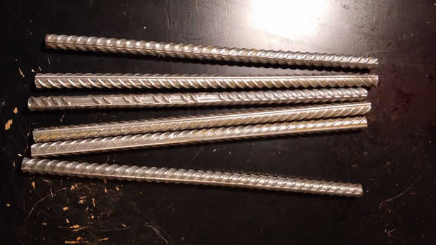 Corte acero rebar para longitudes de 1 pie y rápidamente Unte la superficie con una amoladora. No utilice acero inoxidable. Contiene cromo y producirá cromato venenoso, que es ilegal la descarga y cancerígenos.