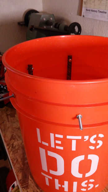 Empujar los tornillos por los agujeros en el cubo y sujetar con la otra tuerca.