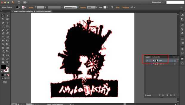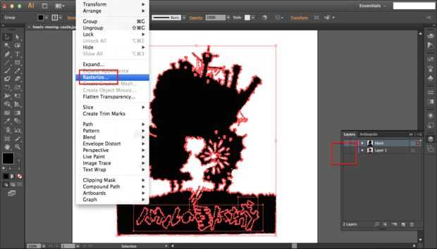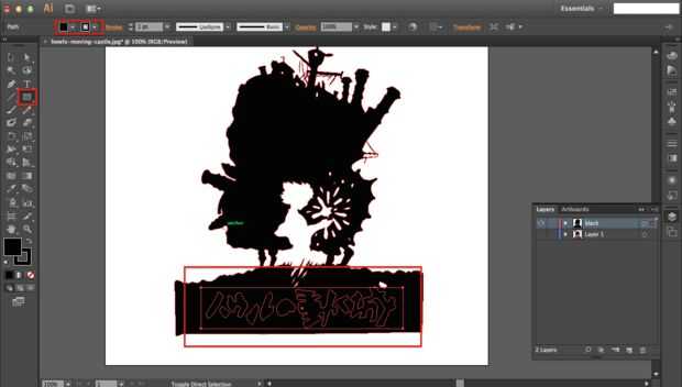 Ver las fotos arriba para obtener instrucciones detalladas de cómo creé la silueta en Illustrator de Adobe.