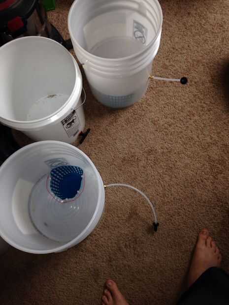 Poner en el adaptador de 1/4" a tubo y acople el tubo y se ejecutan para el cubo de agua. Siempre se puede comprar un contenedor más grande para contener el agua y ampliar sobre esto. Recuerde que el cubo de agua tiene que estar más alta de la tierra para que funcione la gravedad alimenta el sistema de los cubos.