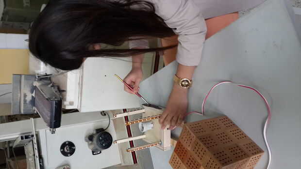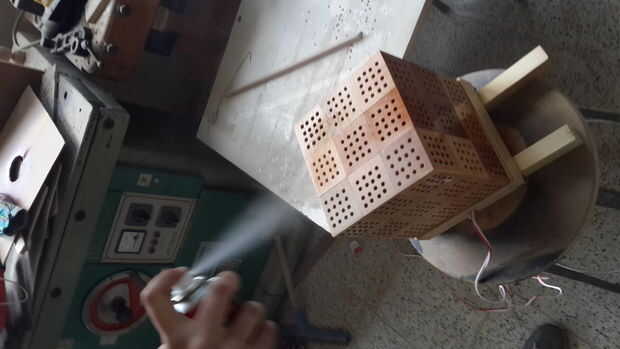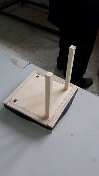 • Fomentar el desplegable siguiente en la base de los orificios en la base de maderas agujeros abiertos 1 cm. (4) hasta que los orificios de las varillas de madera de 15 cm.