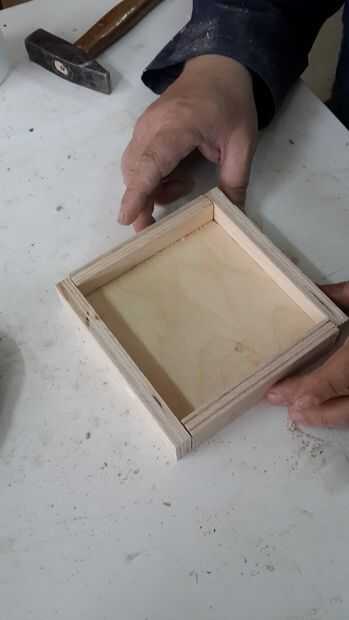 con la ayuda de la pasta y pegamento las piezas de madera 4 piezas juntas en la parte superior cubren de placa de una pasta madera 15 x 15 x 3 cm cortado y seco.