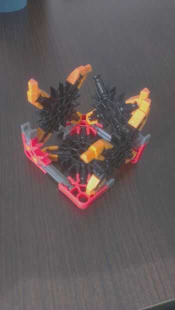 la última parte es la más difícil poner in que mi recomendación es que primero Conecte las varillas negras, luego el naranja piezas en ángulo.