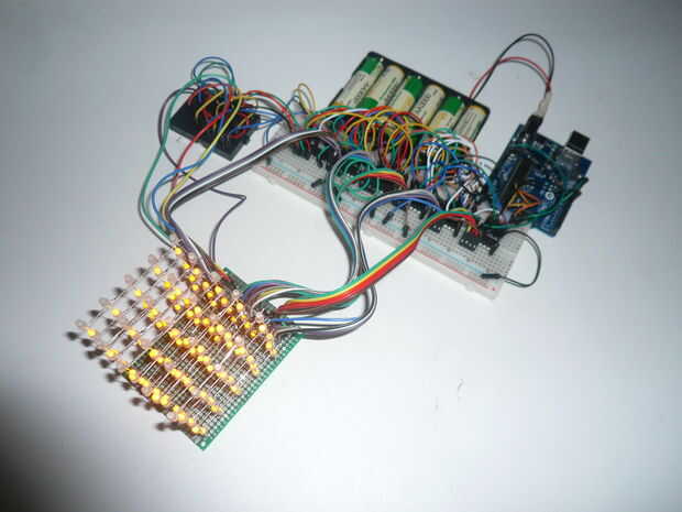 Este proyecto requiere algunos conocimientos de soldadura, pero su fácil y perfecto para principiantes de Arduino.Paso 1: partes piezas que utilicé:* arduino UNO* PCB board* 64 x LEDs difusas* alambres de cable ethernet* 20 x clavijas macho para Ardu