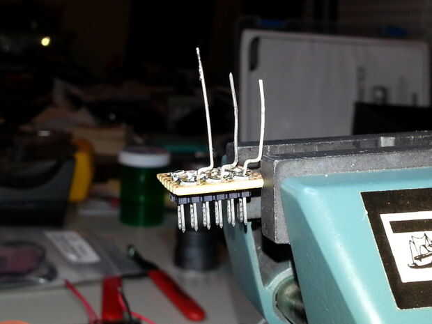 * Monte 3 alambres en el lugar apropiado (que se les vincula a 3 pines de cabecera) en el perfboard.