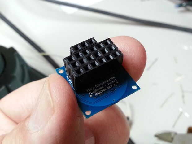 * Montar headers hembra en la parte superior de la TinyShield Proto3