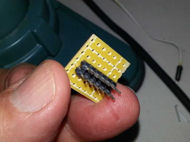 * Corta perfboard con tamaño y añadir cabeceras masculinas en la parte inferior de la perfboard (las pastillas son en la parte superior)