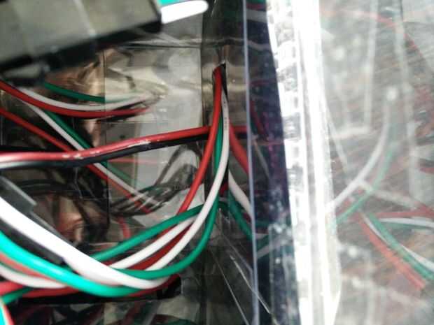 2. Fije la matriz en cada lado de los 8 * 8 * 8 blister caja de presentación y poner los cables de la TJS en la caja de visualización