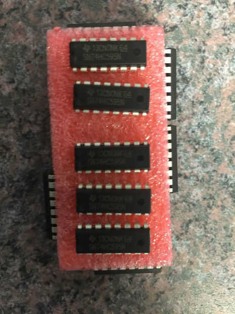El poder real en el registro de desplazamiento proviene de su capacidad para vincularse en un encadenar. Si dos registros de desplazamiento tienen su reloj pernos y pernos de cierre conectados, y conectamos los datos hacia fuera del perno (9) de registro de un cambio en el pin de datos (14) de otro, el Arduino puede comunicarse a ambos en serie. De esta manera el Arduino puede comunicarse a un número prácticamente ilimitado cambiar de registros y otros dispositivos, aún mediante sólo tres / O de Si reemplazamos nuestro byte solitario, 'datos', por una matriz de bytes como: [] datos = {a, b;} donde un = 00000000 y b = 11111111, entonces el comando shiftOut (dataPin, clockPin, MSBFIRST, datos); dará byte una y el segundo registro de desplazamiento, byte b para el registro de desplazamiento original. De esta manera una cadena arbitrariamente larga de Margarita funciona igual que una cinta transportadora. El primer byte en la matriz de datos es el primero en ser cambiado de puesto hacia fuera y va directamente al primer registro de desplazamiento, que le da apagado el siguiente registro de desplazamiento y así sucesivamente hasta el final de la cadena. Esto sucede con cada byte, por lo que el último turno registro acaba de recibir el primer byte de la matriz, mientras que el primer registro de desplazamiento recibe el último. Esto hace cadena de registros de cambio de una gran manera de una serie de 54 RGB LED de control de codificación con un Arduino.