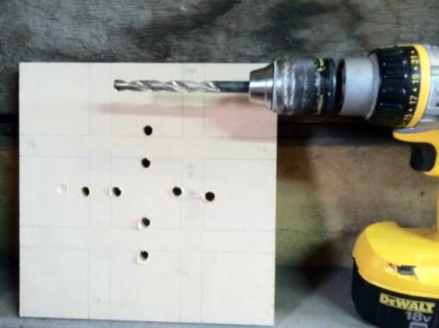 Sierra Perfore orificios piloto que permitirán a su plantilla a un punto de partida para el interior del corte secciones. Usé un 3/8" bits.