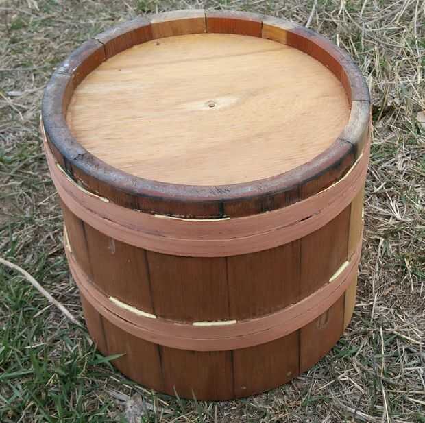 El cubo de madera antiguo antes tenía bandas de metal alrededor de la circunferencia cerca de la parte inferior y media del cubo. Los quité en el primer paso y reemplazándolas con bandas de madera que proporcionan estabilidad y escondieron la mayor parte de la madera decolorada que fue el resultado de contacto con los grupos de metal oxidados.