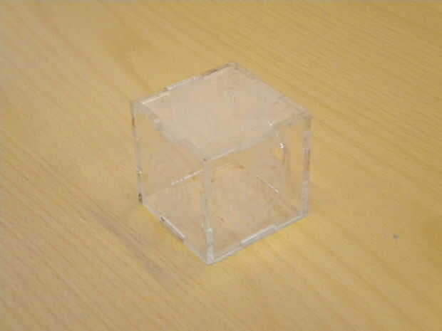 Se trata de un cubo de uniones mediante el machihembrado cortadas con la cortadora láser